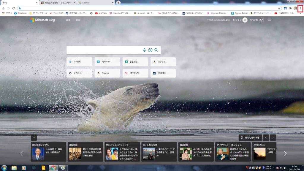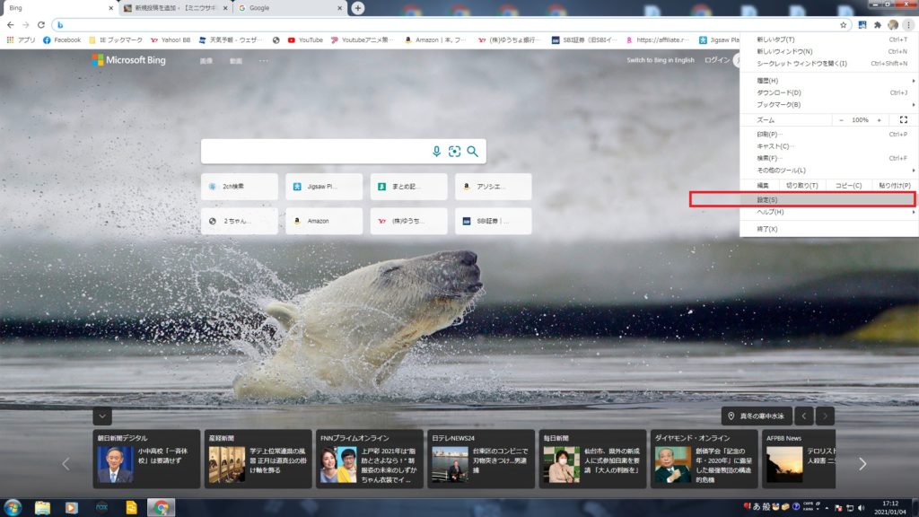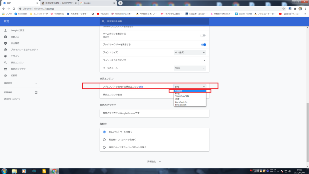 Bing →Googleに変更で戻ります。