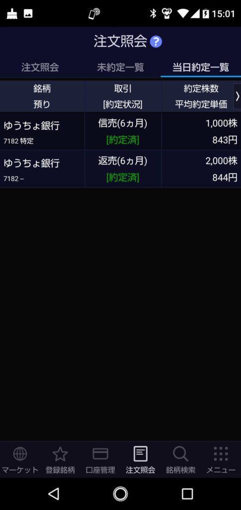 その後 843円 × 1,000株空売り いれておきました。