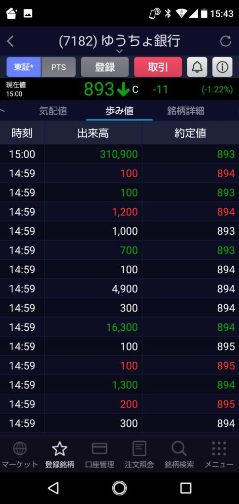 何度か902円まで下がりましたが、最後は903円で終了でした。