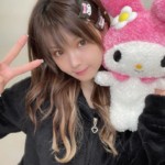 クロミの顔のフードを被った田中は「クロミちゃん×マイメロちゃん」とつづり、マイメロディの人形を抱っこし、太ももがちらりと見えている姿を投稿した。