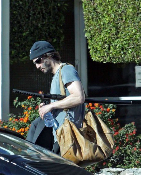 スマホ感覚で日本刀持ち歩いてることでお馴染みのキアヌだけど、冗談とかじゃなくてガチで普段から持ってる感じ好き pic.twitter.com/X6lESPotQ2
