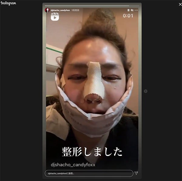 3月20日、DJ社長はインスタグラムのストーリーズで整形後の顔を公開。