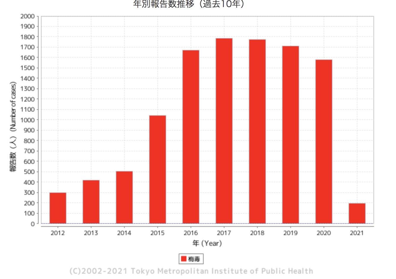 もちろん、コロナ禍で性的なサービスを行う店を利用したり、マッチングアプリを通じて不特定多数の相手と関係を持つ人は減っているとも言われている。ただし、国立感染症研究所のデータを確認してみると、淋病や性器ヘルペス、尖圭コンジローマなど他の主要な性感染症はいずれも平年通りだ。