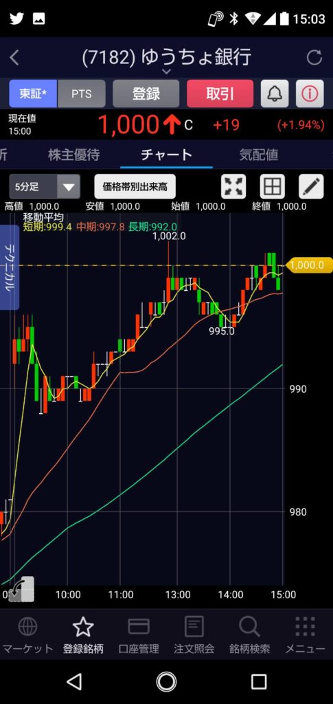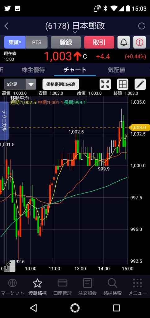つい2週間くらい前に998円まで上がったんですが・・・・中国の不動産問題で次の日には下落・・・その次も日もって感じで950円くらいまで落ちていた先週・・・・ちょっと冷や冷やしましたがやっと1,000円台に乗ってくれた~~!!