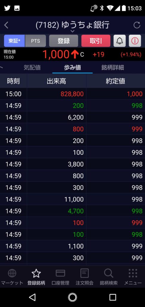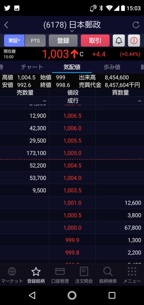 そして・・・日本郵政のほうは、1,171,800株のかなりの大口買いが!! これで今日上がらないはずはないって思っていました。