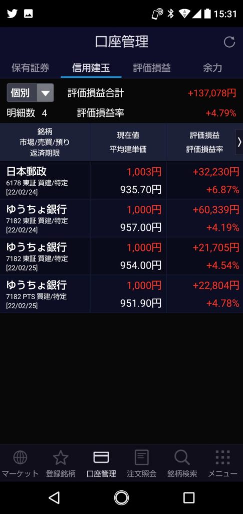 いつも上がる時って大体かんぽ生命の方がすごい上がってるんだよな~
