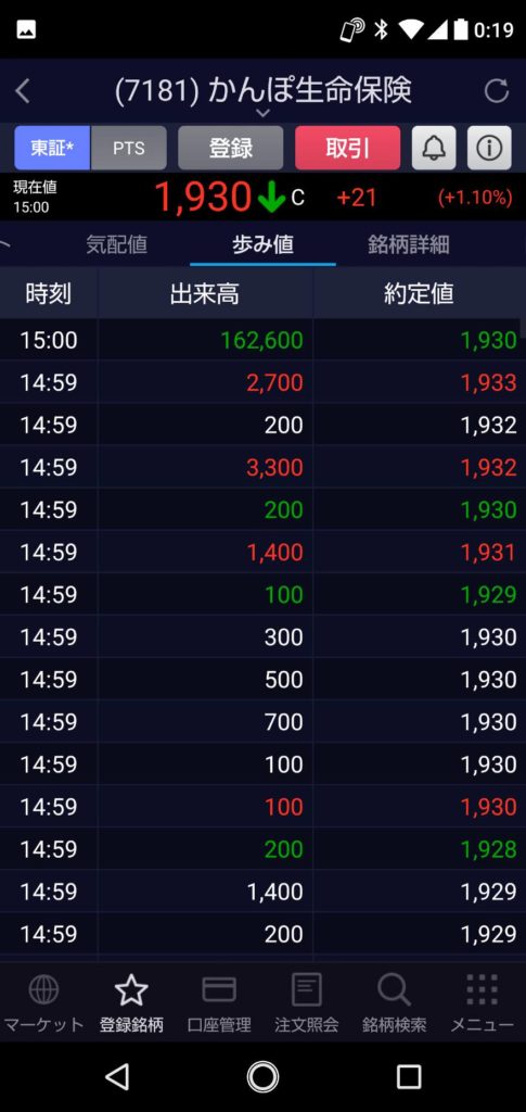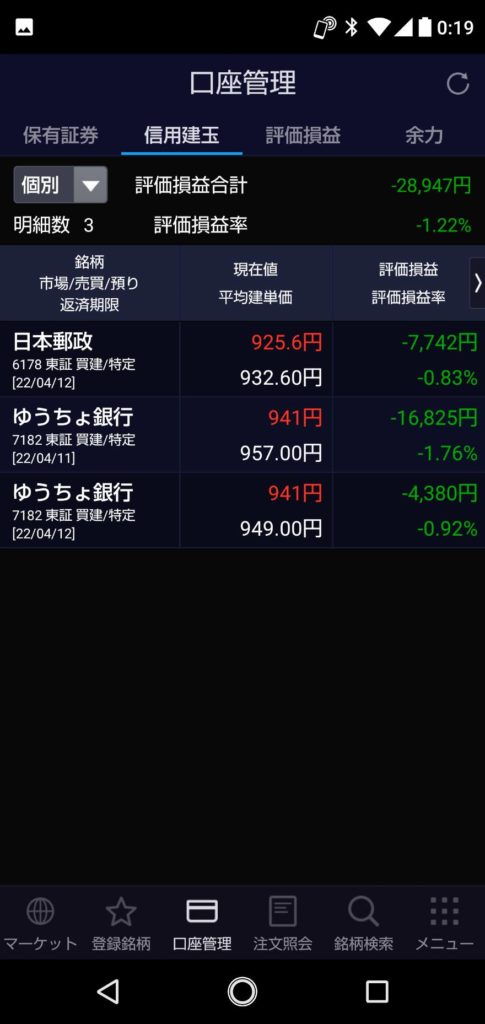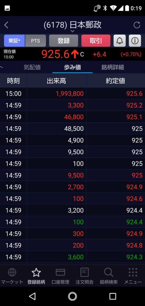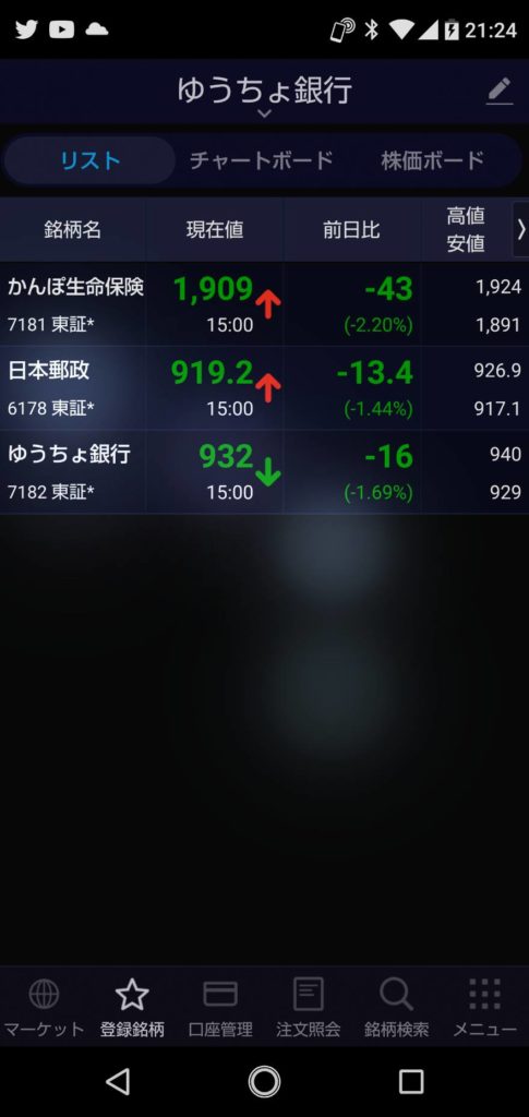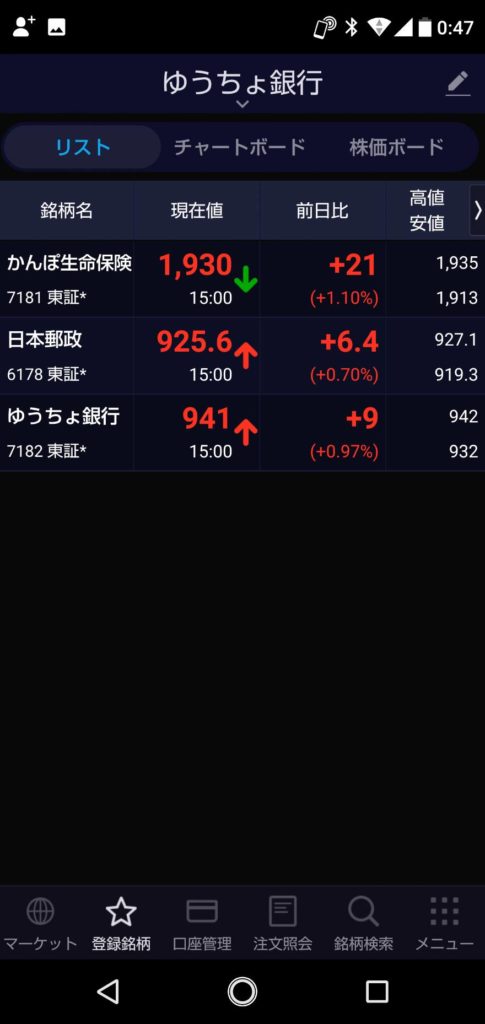 ちなみに↓ が昨日の郵政三社の終値 & 本日の終値。