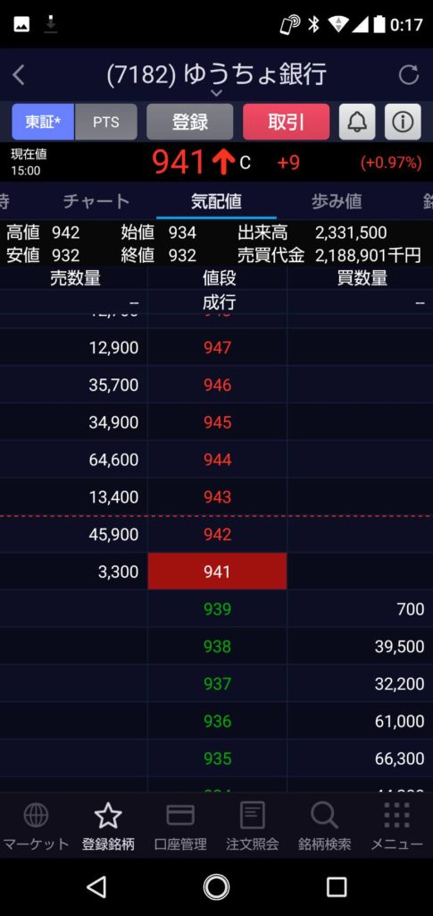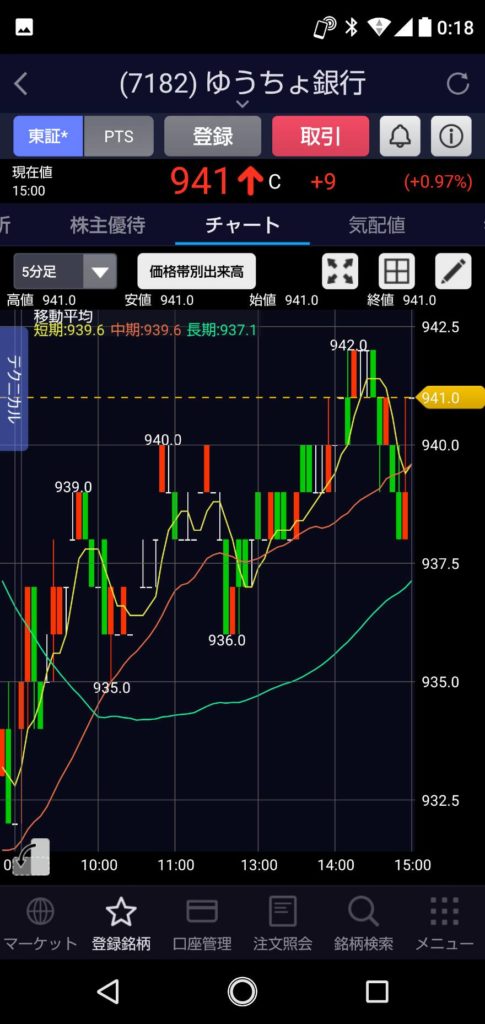ゆうちょ銀行もー16円に対して+9円・・・・