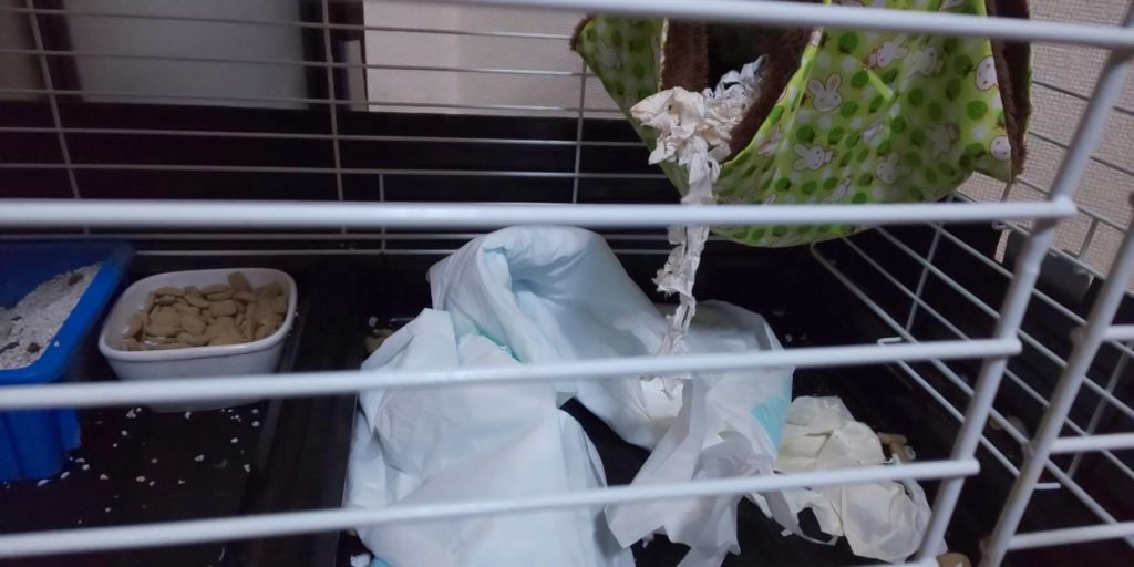 前回も今飼っているラットもペットシートを入れていたんですが・・・大体丸めて遊んでしまってほとんどオシッコ対策になっていないんですよ。