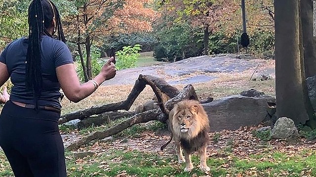 (CNN)米ニューヨークのブロンクス動物園で9月下旬、女がライオンの囲いに入って踊り出す