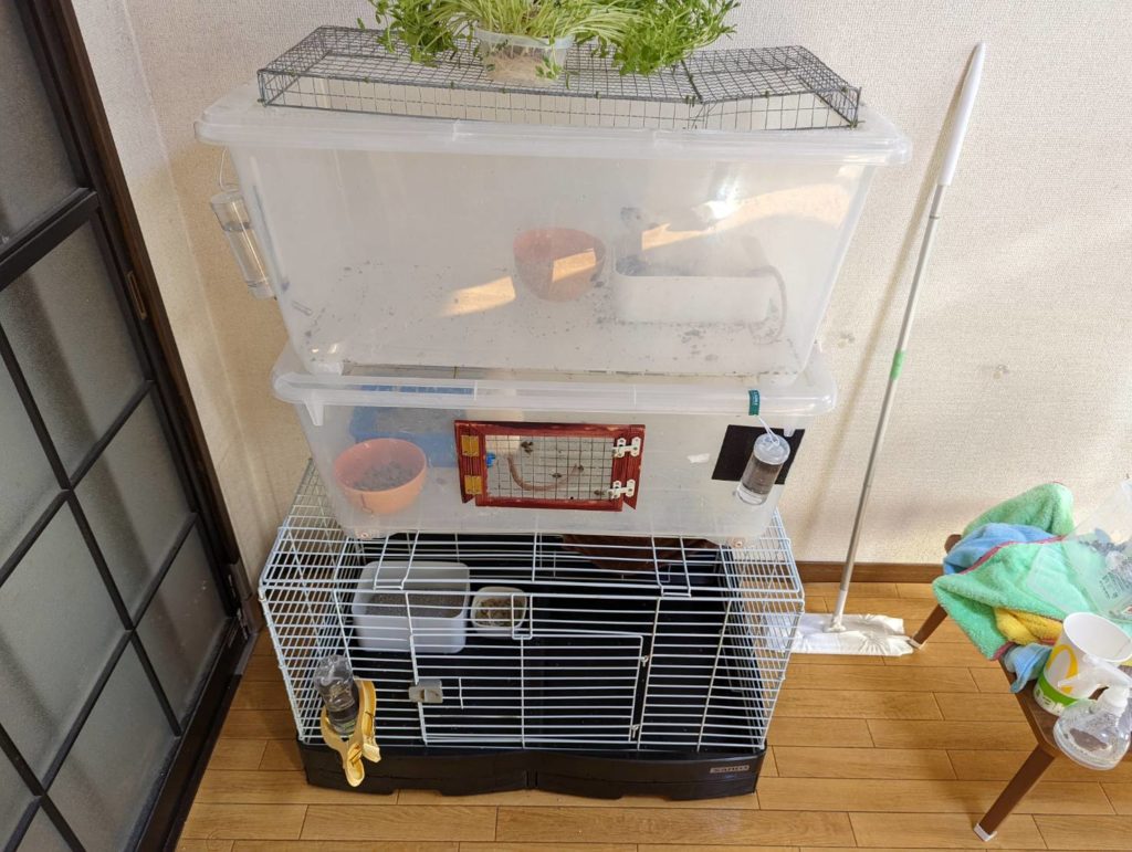ケージも衣装ケースも水洗いをして一気に新装気分にしてみました。
