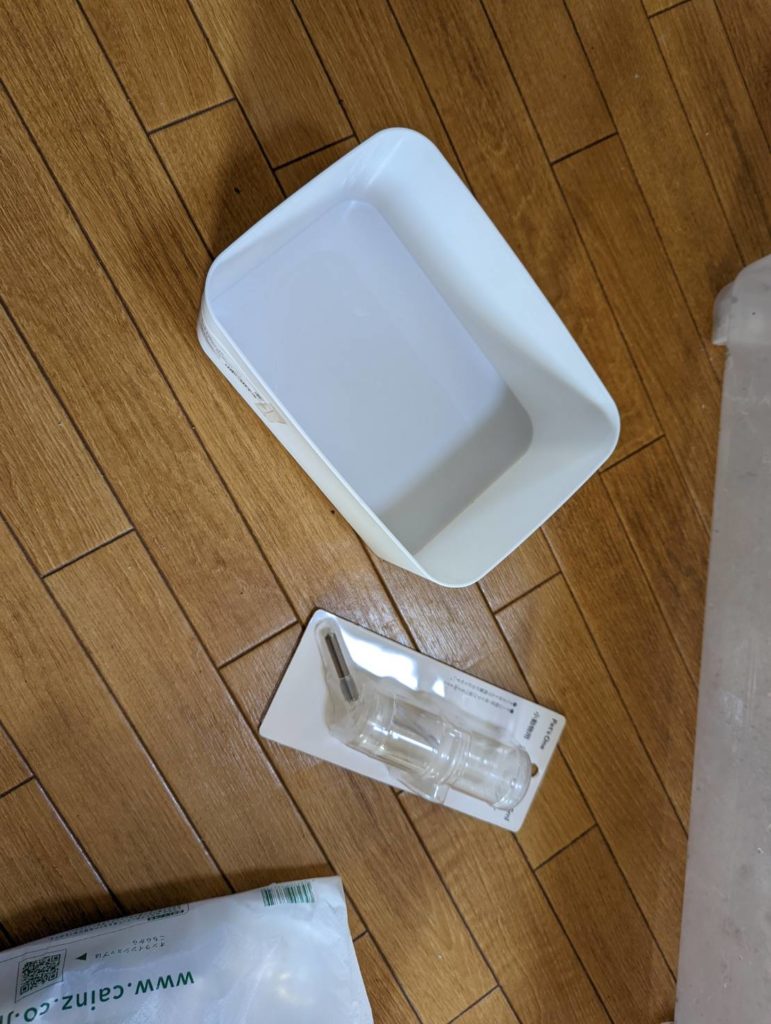 ハムスターが使っていた衣装ケースを取り出してイザ分けようと思ったら・・・飲み水の入れ物が無いww