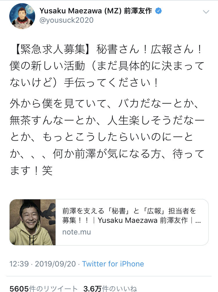 【悲報】前澤友作さん、SNSで知り合った秘書志望の女性に関係を求めてしまい警察沙汰に
