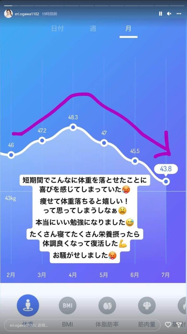 実際、エンリケさんは4月から7月の間に48.3キロから43.8キロの4.5キロのダイエットに成功したことをインスタグラムのストーリーズでも明かしている。