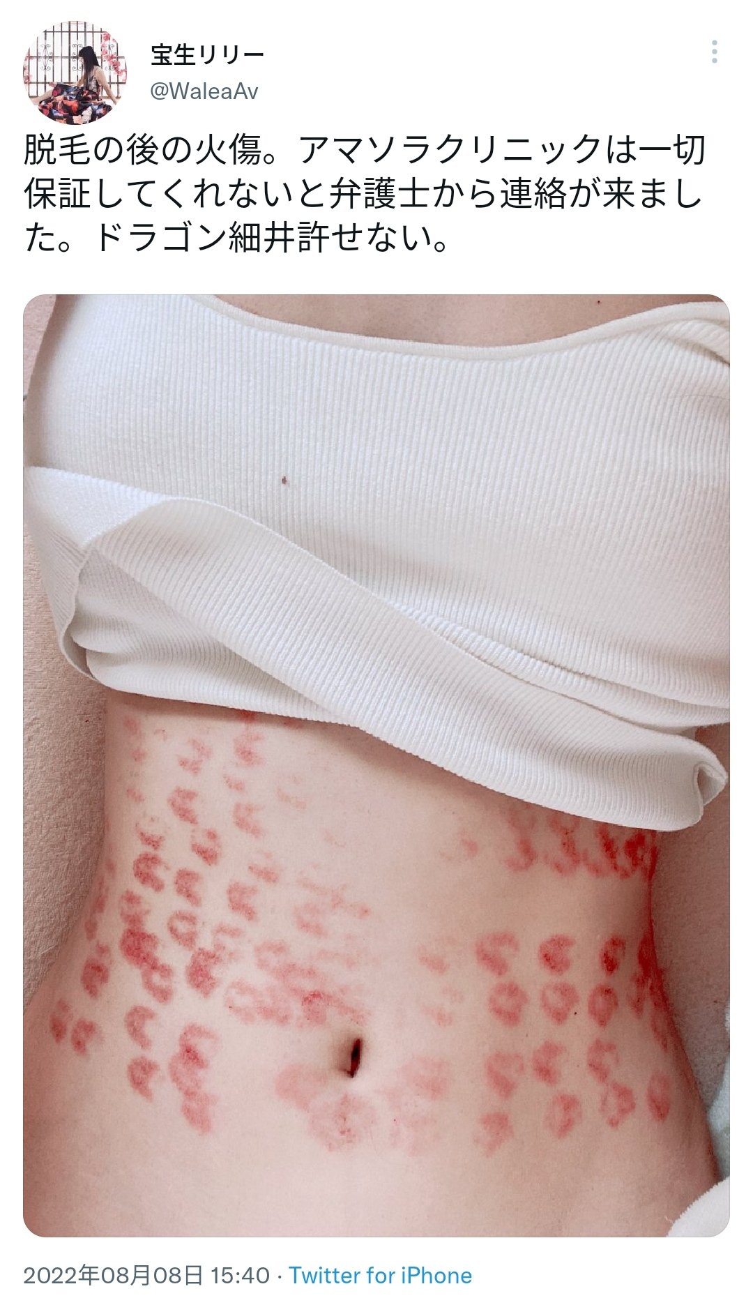 引用元: ・【悲報】AV女優さん有名美容クリニックで機器トラブルで体に火傷を負ってしまう