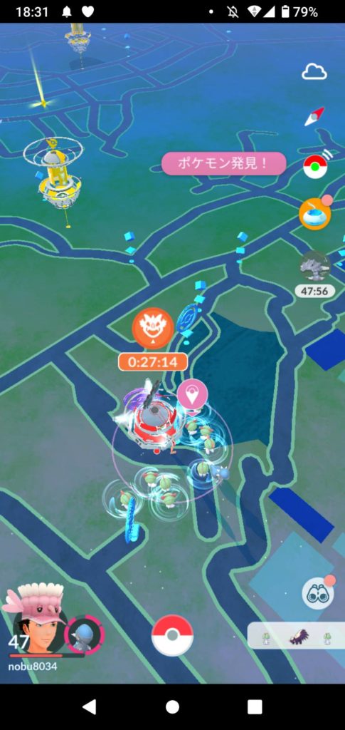 公園ジムとかポケスポット多いところを重点的に周ったんですが・・・残念。
