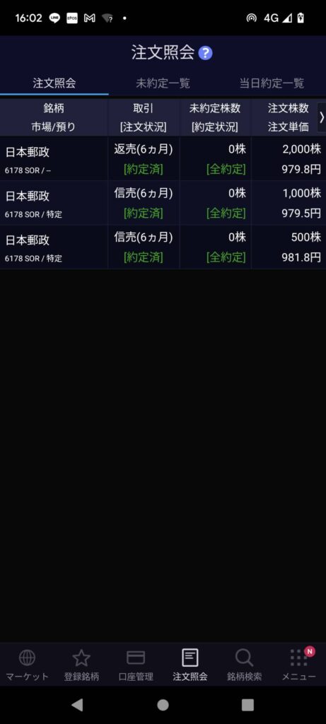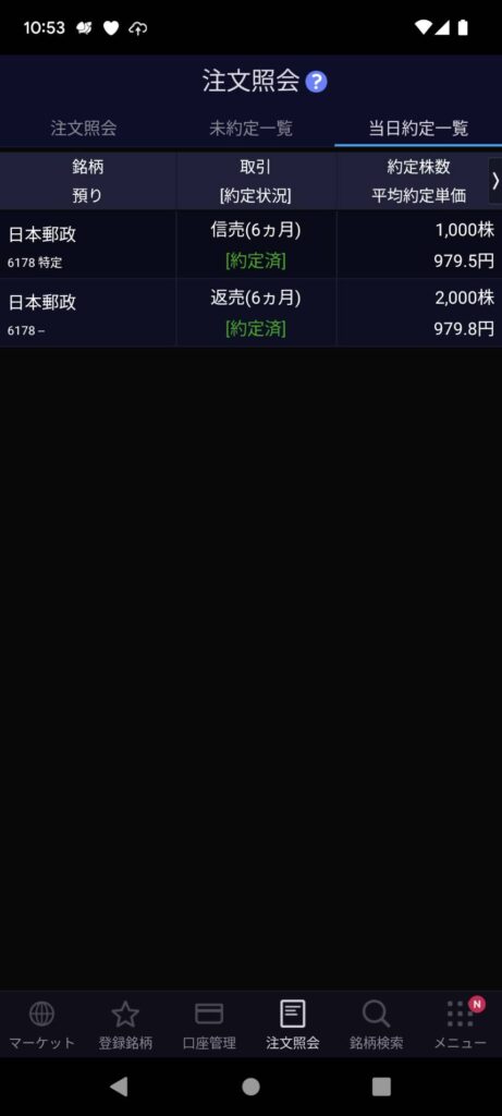 その後、981.8円×500株の空売りを入れたんですが・・・