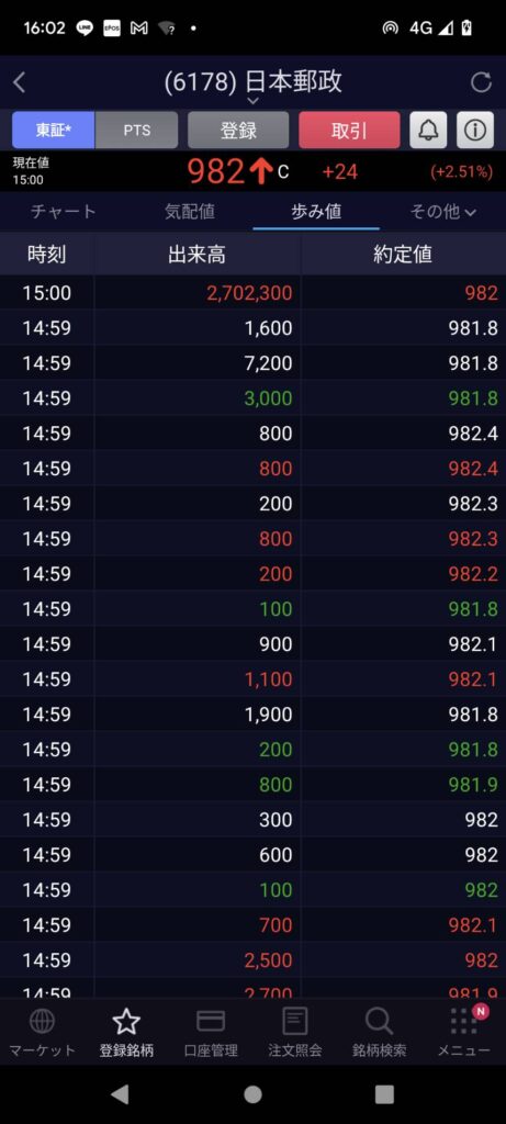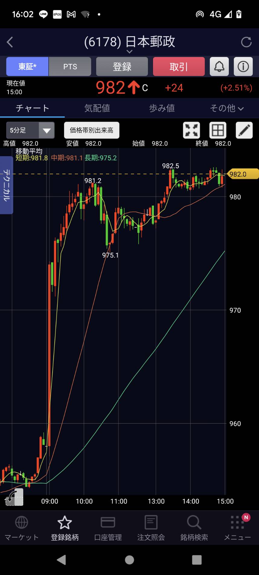 日本郵政って980円の壁って厚いのかな? ちょっと前は980円超えた後はまた950円台まで下がって・・・の繰り返しもしていたのちょっと期待ですね。