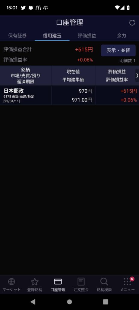 最後終わり間際・・・・971円×1,000株の空売り追加・・・