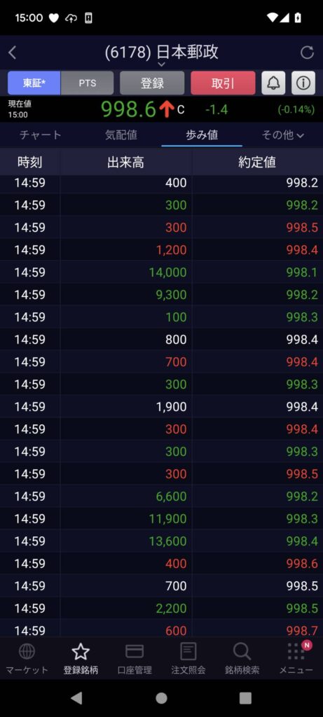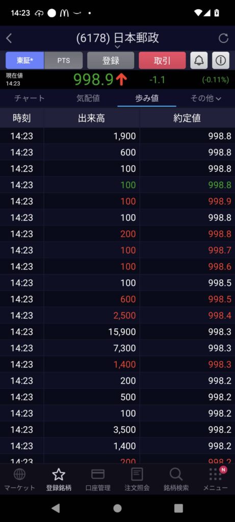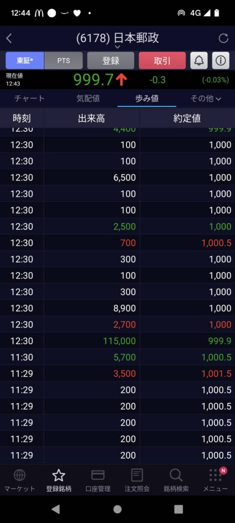 スタートは997.9円・・・10:30分くらいには最高値の1004.5円まで上がっていましたね!