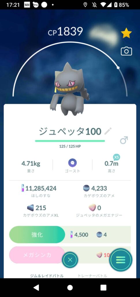 カゲボウシ・・・博士送りにしてやりました!! 30分間だけ進化マラソンやっただけなのでそんなに捕まえなかったんだな・・・