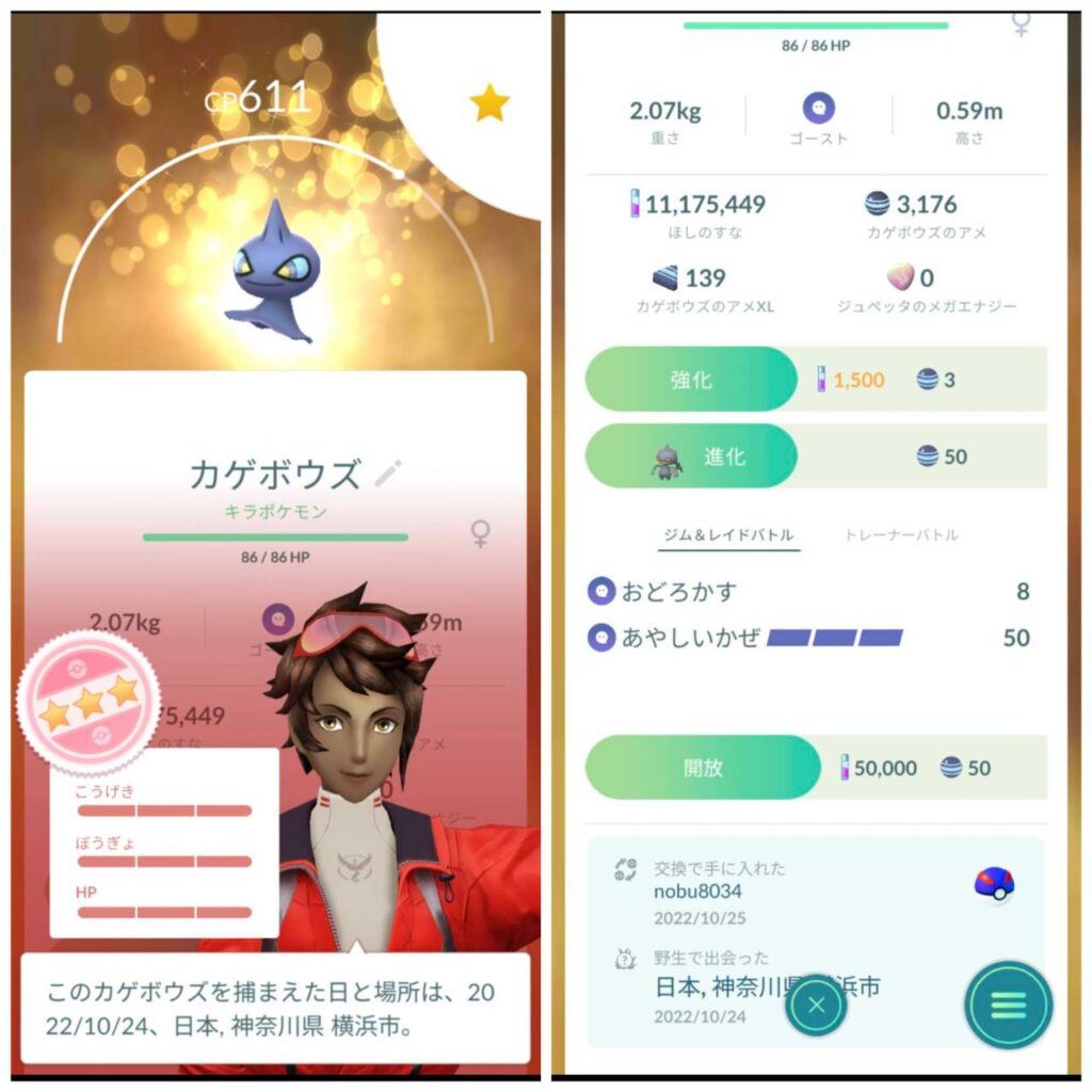 ムウマに続いてカゲボウシの固体値100をゲット!!