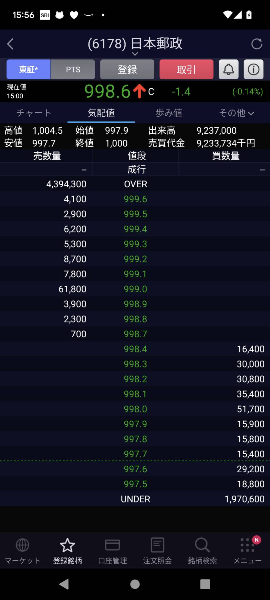10月26日 日本郵政株・・・はやく990円以下ならねーかなw