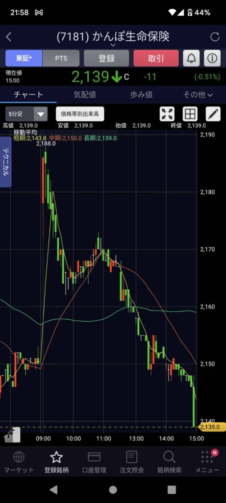かんぽ生命も朝一すごい上がってからドンドン下がっていたのか・・