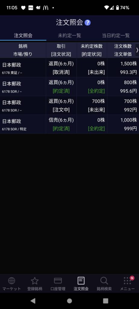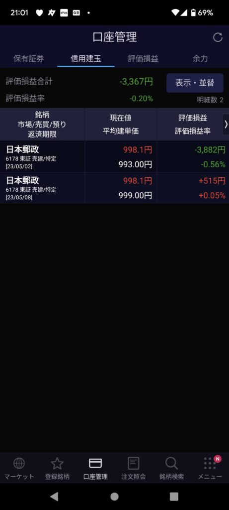 朝一994円台まで落ちた時全部買戻ししていればマイナスじゃなかったんですが。