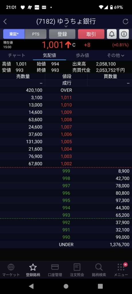 とうとうゆうちょ銀行も999円の壁突破されて1,000円台に・・・