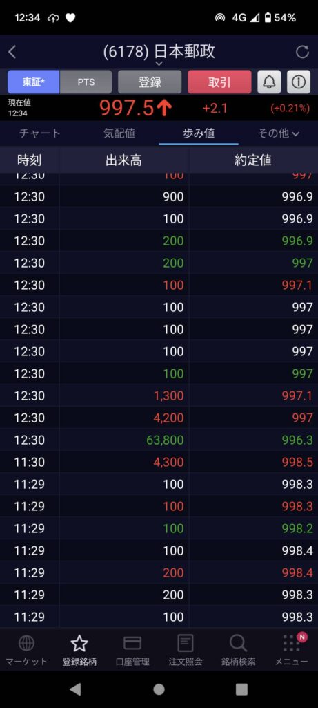 午前の終値が998.5円だったんですが・・・いきなり2円くらい下がって996.3円でスタート?