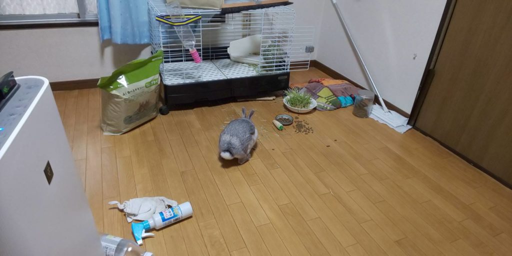 これからはお昼の部屋散歩も必要なのか!! うさぎの脚力って半端ないですね・・・散らかしたチモシーの上を跳ねたときなんて、そこらじゅうに飛び散ります!!