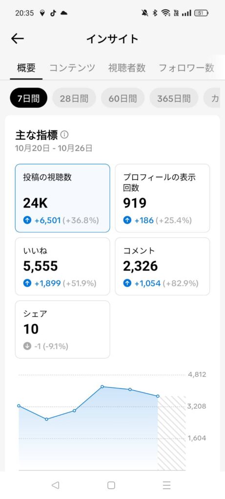 7日間の視聴回数が24kに!! 目標は25kなのであと1,000!!