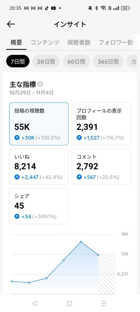 連休挟んでいたからかな?7日間で55kはすごい!!