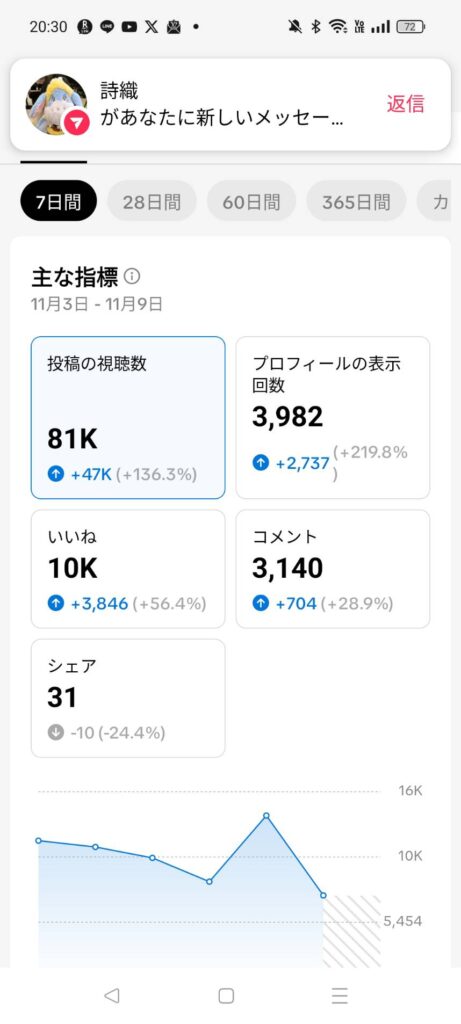 数値的にはいいと思うんだけど…なかなかフォロワーさん増えないね。